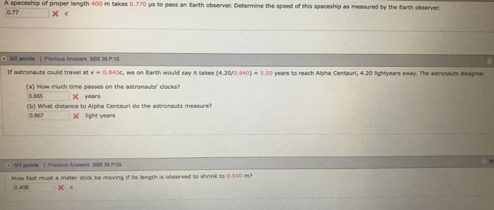 Solved A Spaceship Of Proper Length 400 M Takes 0 770 Us