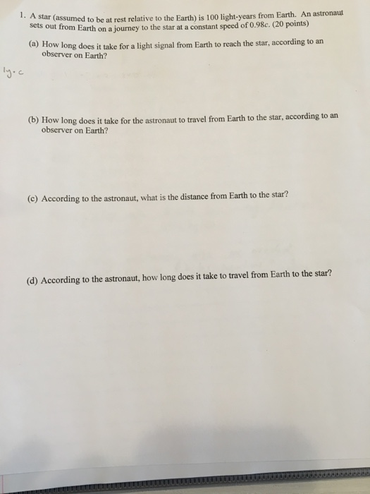 Solved A Star Assumed To Relative To The Earth Is 100 L