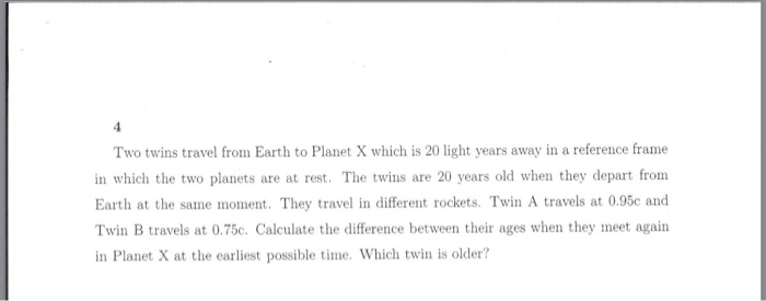 Solved Two Twins Travel From Earth To Planet X Which Is 2
