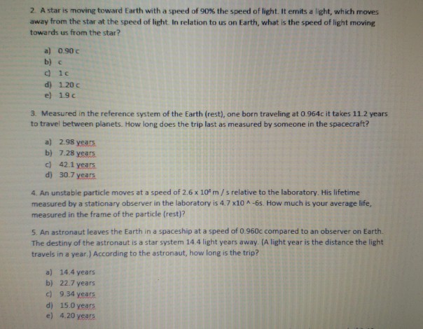 Solved 2 A Star Is Moving Toward Earth With A Speed Of 90
