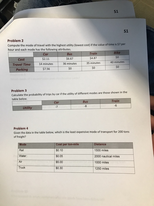 Solved S1 S1 Problem 2 Compute The Mode Of Travel With Th
