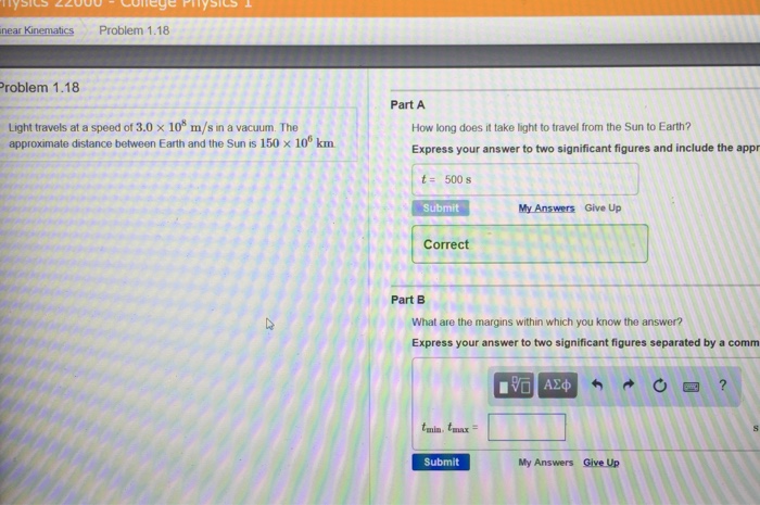 Solved Part A How Much Time Does It Take Light To Travel