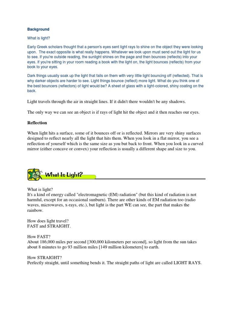Background Light Experiment 1 Reflection Physics Light