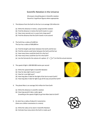 Scientific Notation In The Universe By Dh2119 Teaching Resources Tes