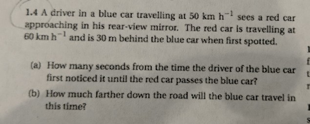 Solved 1 4 A Driver In A Blue Car Travelling At 50 Km H S